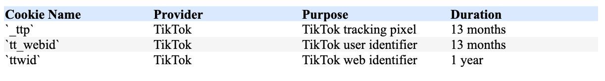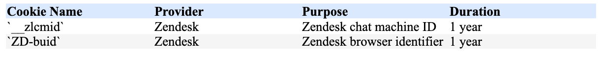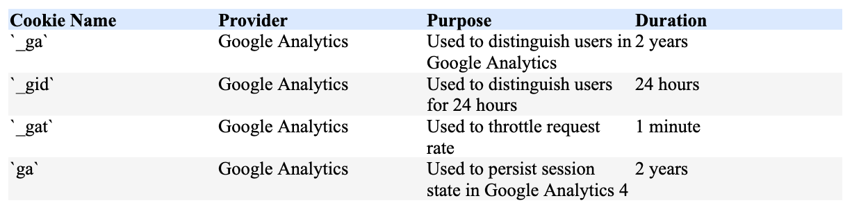 4. Cookies We Use